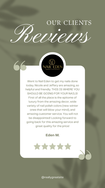 At Nail Eden, beauty begins with intention. We offer more than services, we create a sanctuary of refined relaxation where every detail is thoughtfully curated. Our artistry blends precision, care, and open communication so every visit feels effortless, indulgent, and tailored to you.